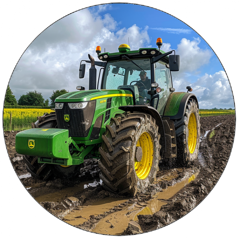 Essbares Papier John Deere Traktor auf dem Feld 19,5 cm