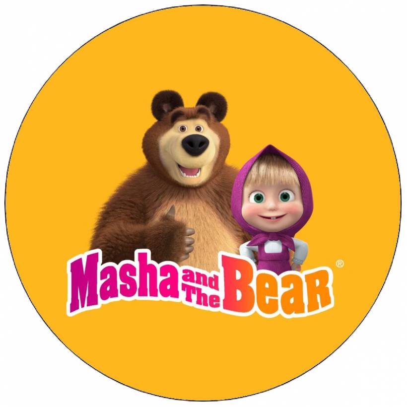 Essbares Papier Máša und Bär auf gelbem Hintergrund 19,5 cm
