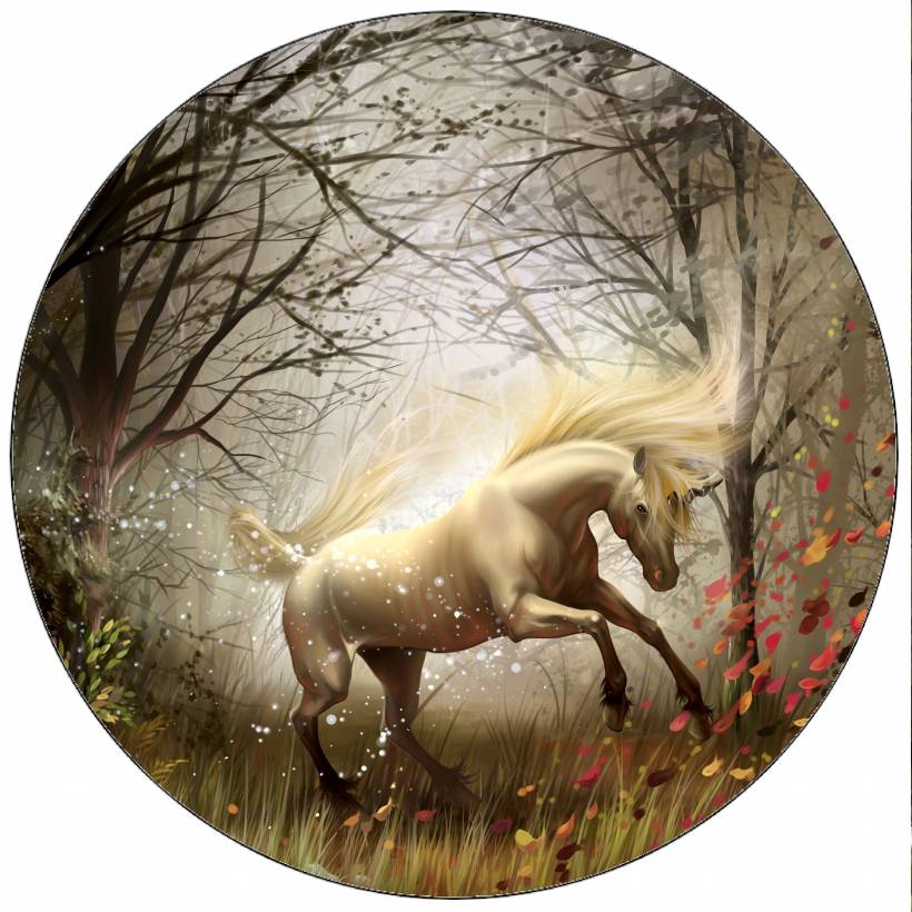 Essbares Papier mit Einhornmotiv. Durchmesser 20 cm.