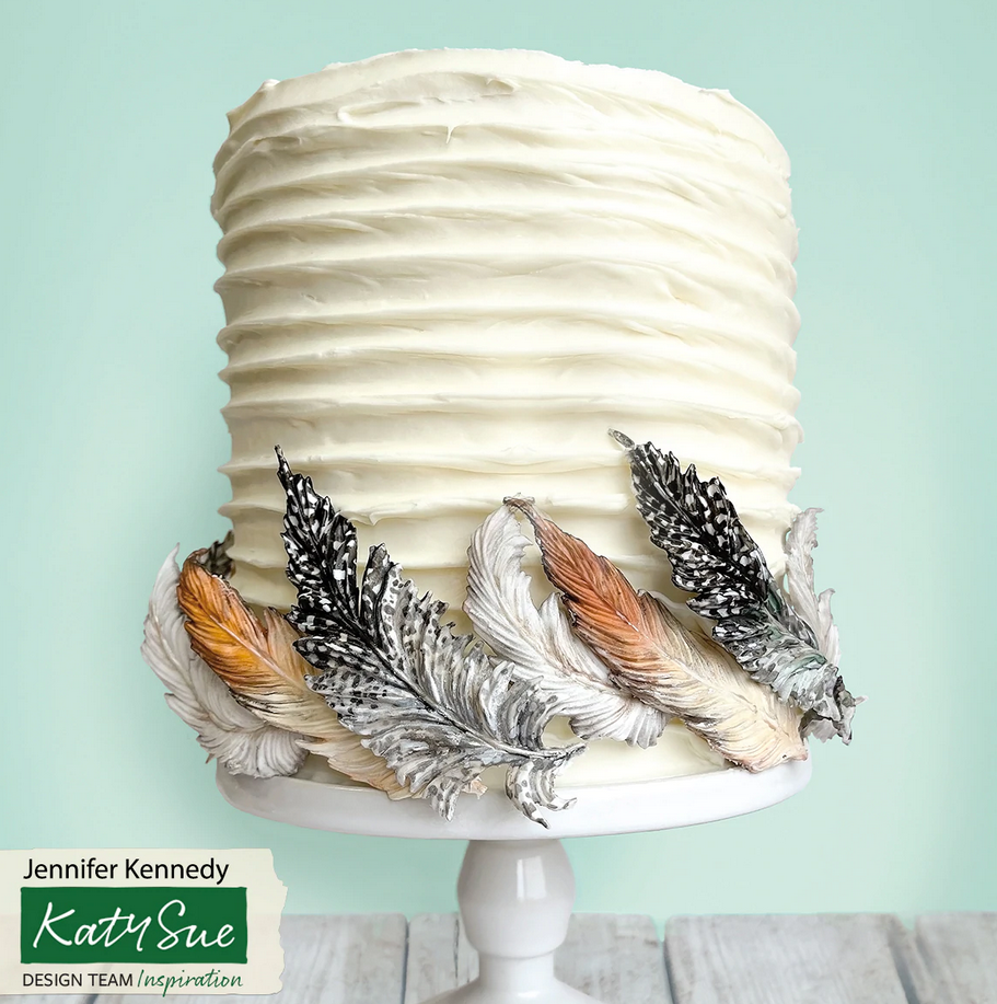 Diese Form von Katy Sue ist perfekt, um schöne Federn herzustellen! Die Federn, die mit dieser Form hergestellt werden, sehen dank der vielen Details echt aus und machen sich toll auf Torten und Cupcakes. Das fein detaillierte Design dieser Katy Sue-Form sorgt jedes Mal für perfekte Ergebnisse. Wir empfehlen, die Form für Lebensmittelprojekte oder für Bastelprojekte zu verwenden, nicht für beides. Anwendung: Fondant in die Form drücken, ohne sie zu überfüllen. Überschüssigen Fondant abkratzen, um die Kontur zu sehen. Vorsichtig drehen, um die Dekoration zu lösen. Leicht mit Speisestärke bestäuben, um sie zu lockern. Waschen und trocknen Sie die Form vor dem Gebrauch gut ab. Die Form ist ofenfest (bis zu 200°C) und spülmaschinenfest. Katy Sue-Formen bestehen aus lebensmittelechtem Silikon und werden in unserer eigenen Fabrik in Großbritannien hergestellt. Größe der Form: 151mm x 129mm x 8mm. Größe des Kerns: 113 x 103 mm x 4 mm. Größe der großen Federn: 120 x 35 mm. 116 x 25 mm. Kleine Feder: 63 x 44 mm. 100 x 46 mm. Kleine Ader: 76 x 50 mm.