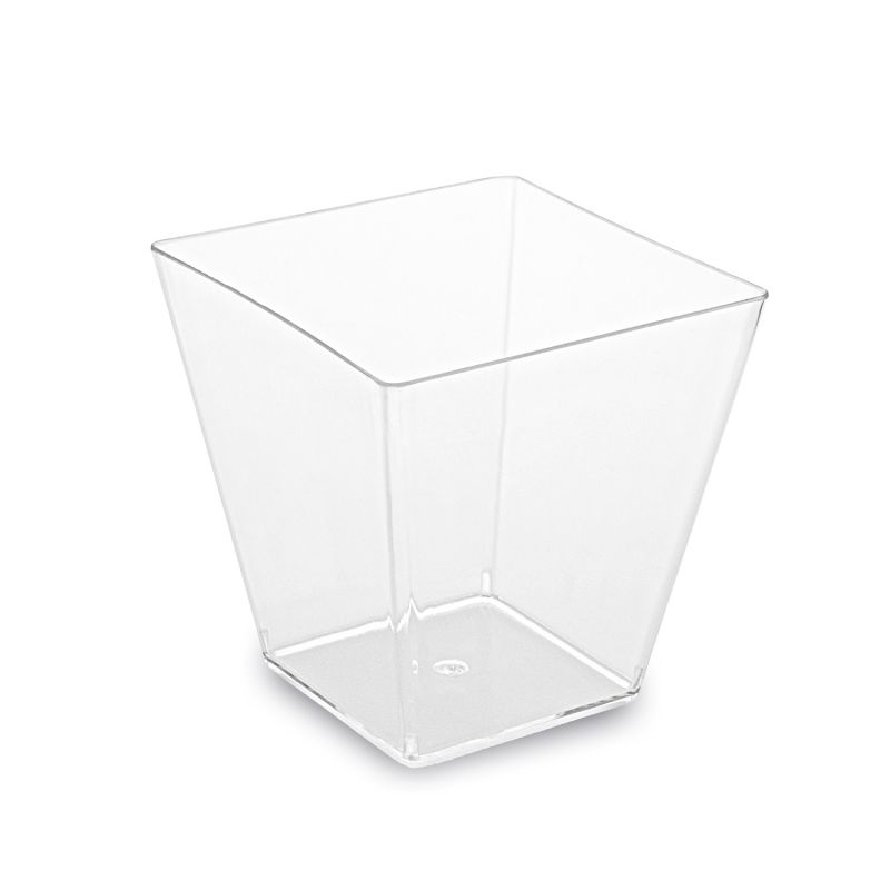 Kelime aus hochwertigem Kunststoff, der eine perfekte Nachbildung von Glas ist. Sie haben eine perfekte Transparenz und eine kristalline Struktur. Sie beseitigen das Problem der nachfolgenden Spülung des Geschirrs - ideal besonders bei Großveranstaltungen oder privaten Abendessen, um originelle Desserts vorzubereiten, mit denen Sie Ihre Gäste überraschen. Das Geschirr ist fest und robust.