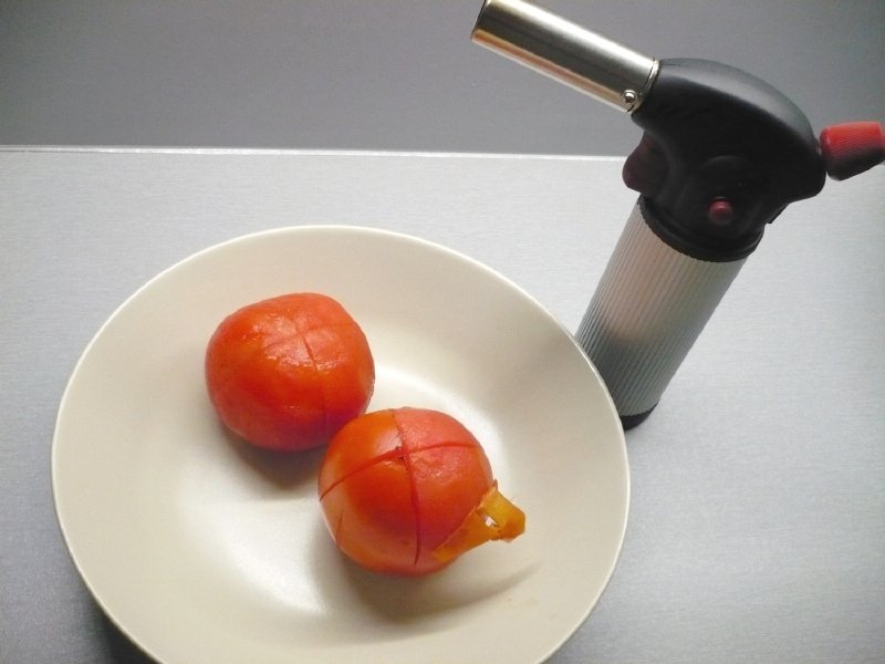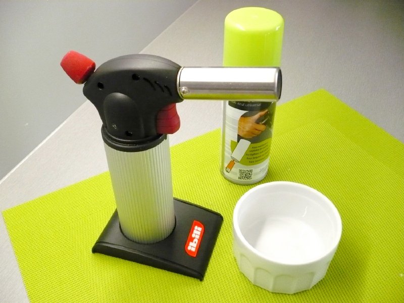 Mit der Flammenpistole können Sie auch köstliche Crème bruleé zubereiten. Wir haben sie von einem Foodblogger für Sie testen lassen: Wenn Sie noch keine Flammenpistole besitzen, wird sie ein sehr beliebtes und viel genutztes Werkzeug werden, sobald Sie sie kaufen. Sie ist vielseitig einsetzbar, zum Flambieren, Gratinieren und Karamellisieren. In der Konditorei wird sie sicherlich sehr notwendig sein, um Zucker auf der Oberfläche von Desserts zu karamellisieren. Zum Beispiel bei der Zubereitung von Crème brulee. Sie erzeugen eine schöne knusprige Kruste oder bereiten eine schöne gebräunte Schneehaube auf einem Kuchen oder einem Dessert vor. Sie können zum Beispiel Meringues rösten oder Marshmallows und Früchte leicht flambieren. Er wird auch für die Herstellung von süßen Toppings verwendet. Sie können damit auch verschiedene Desserts auf der Oberfläche gratinieren. Die Flambierpistole versengt nur die Oberfläche und erhitzt nicht den Behälter mit den Speisen, was ein großer Vorteil ist. Sie kann auch zum Gratinieren von Käse, zum Erzeugen einer knusprigen Kruste auf gebratenem Geflügel, zum Zubereiten von Steaks, zum Anbraten von Speck usw. verwendet werden. Auch in der Vorbereitungsphase von Gerichten für die weitere Wärmebehandlung ist er sehr nützlich. Verwenden Sie es zum Anbraten von Federresten bei Geflügel und zum Beseitigen von Borstenresten bei Schweinefleisch mit Haut. Dies gilt insbesondere für Knie und Keulen. Mit einer Flammenpistole können Sie Tomaten und Paprikaschoten anbraten und dann vorsichtig die Haut entfernen.