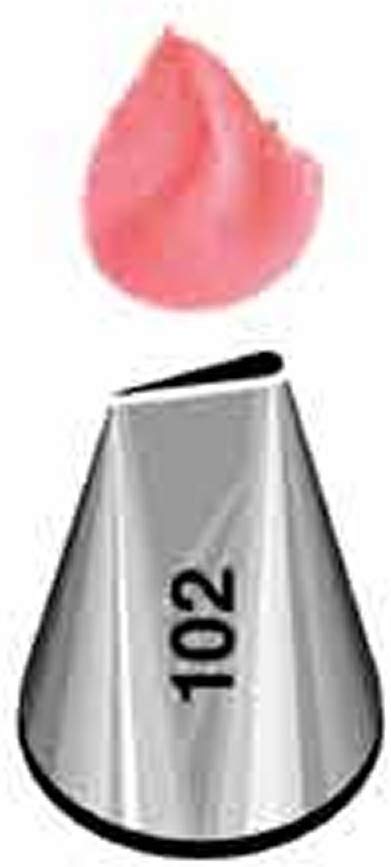 Die Metall-Dekorierspitze 102 garantiert Ihnen eine präzise und einzigartige Dekoration. Die Spitze kann wiederholt mit dem Dekorationsbeutel verwendet werden. Sie ist aus rostfreiem Stahl gefertigt, es bleiben keine Fettflecken auf der Oberfläche. Nicht spülmaschinenfest.