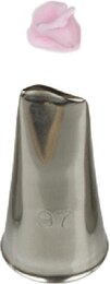 Die Metall-Dekorierspitze 97 garantiert Ihnen eine präzise und einzigartige Dekoration. Die Spitze kann wiederholt mit dem Dekorationsbeutel verwendet werden. Sie ist aus rostfreiem Stahl gefertigt, es bleiben keine Fettflecken auf der Oberfläche. Nicht spülmaschinenfest.