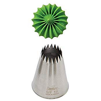 Die Metall-Dekorierspitze S/F18 garantiert Ihnen eine präzise und einzigartige Dekoration. Die Spitze kann wiederholt mit dem Dekorationsbeutel verwendet werden. Sie ist aus rostfreiem Stahl gefertigt, es bleiben keine Fettflecken auf der Oberfläche. Nicht spülmaschinenfest.