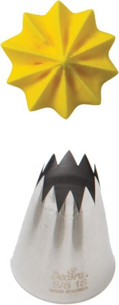 Die Metall-Dekorierspitze S/S18 garantiert Ihnen eine präzise und einzigartige Dekoration. Die Spitze kann wiederholt mit dem Dekorationsbeutel verwendet werden. Sie ist aus rostfreiem Stahl gefertigt, es bleiben keine Fettflecken auf der Oberfläche. Nicht spülmaschinenfest.