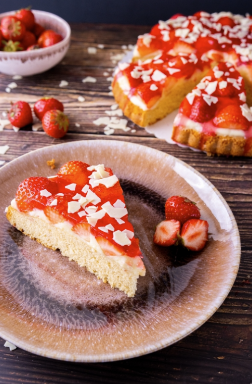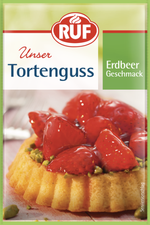 Puddingpulver mit Erdbeergeschmack ist einfach zuzubereiten. Sie fügen außerdem hinzu: 250 ml (1/4 l) Wasser, 2 gehäufte EL Zucker. Zubereitung: Gießen Sie 250 ml Wasser in einen kleinen Topf. Geben Sie den Inhalt des Beutels und 2 gehäufte EL Zucker hinzu und rühren Sie gut mit einem Schneebesen um. Unter ständigem Rühren die Flüssigkeit zum Kochen bringen. Die Kuchen-Glasur lässt man 1 Minute gut abkühlen. Anschließend gleichmäßig auf dem mit Obst bedeckten Kuchen verteilen und fest werden lassen. Den Kuchen erst nach vollständigem Abkühlen der Glasur schneiden.