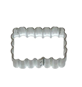 Rechteckige Ausstechform mit dekorativem Wellenschliff. Abmessungen 4,8 x 3,5 cm.