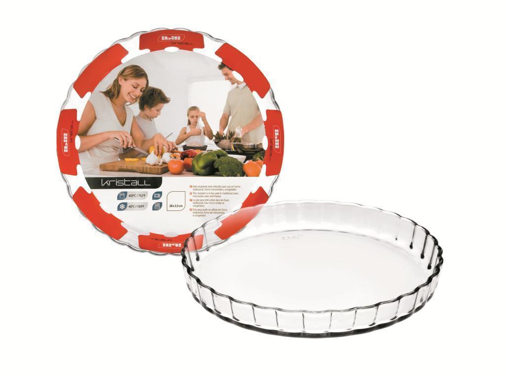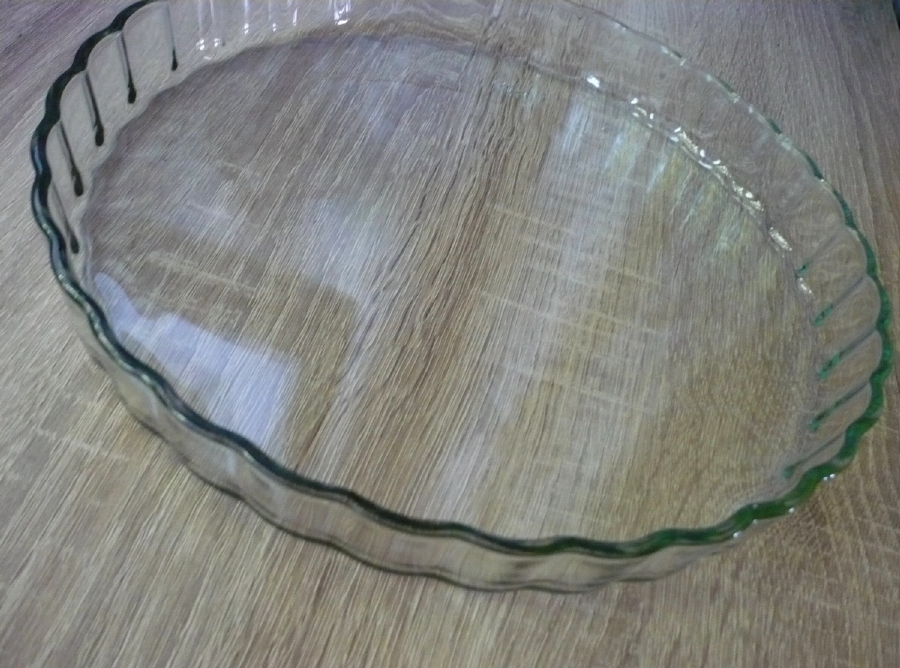 Kuchenformen gibt es aus verschiedenen Materialien, aber hitzebeständiges Glas ist einer der Favoriten. Diese Form hat einen Durchmesser von 28 cm und eine Höhe von 3,5 cm. Sie hat einen schönen gewellten Rand, hält hohen Temperaturen stand und ist für Elektro-, Gas- und Mikrowellenöfen geeignet. Sie kann auch in den Gefrierschrank gestellt werden. Der Vorteil der transparenten Formen ist, dass man von unten und von der Seite sehen kann, wie der Kuchen gebacken ist und ob er anbrennt. Wir müssen nur Temperaturschocks mit einem Unterschied von über 100°C vermeiden. Die heiße Kuchenform wird direkt aus dem Ofen genommen, entweder auf einem Rost oder auf einer Holz- oder Korkmatte. Vermeiden Sie es, sie auf kalte Oberflächen wie Edelstahl, Stein, Marmor oder sogar auf ein nasses Tuch zu stellen.