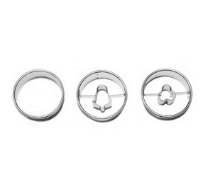 Die scharfe Kante der Ausstecher garantiert jedes Mal eine perfekt geschnittene Form. Eine Ausstechform hat die Form eines glatten Kreises, die beiden anderen haben einen Mittelpunkt in Form eines Kleeblatts und einer Glocke. Das Ausstecherset ist somit ideal für die Zubereitung von Klebebonbons. Der Durchmesser der Ausstechformen beträgt 50 mm. Die Ausstechformen sind aus Weißblech gefertigt. Die Höhe des Blechs beträgt 16 mm.