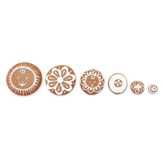 Die Räder haben einen Durchmesser von 5,2 - 4,4 - 3,5 - 2,8 - 1,9 und 1,3 cm. Sie sind aus hochwertigem Weißblech gefertigt. Die Höhe des Riemens beträgt 16 mm.