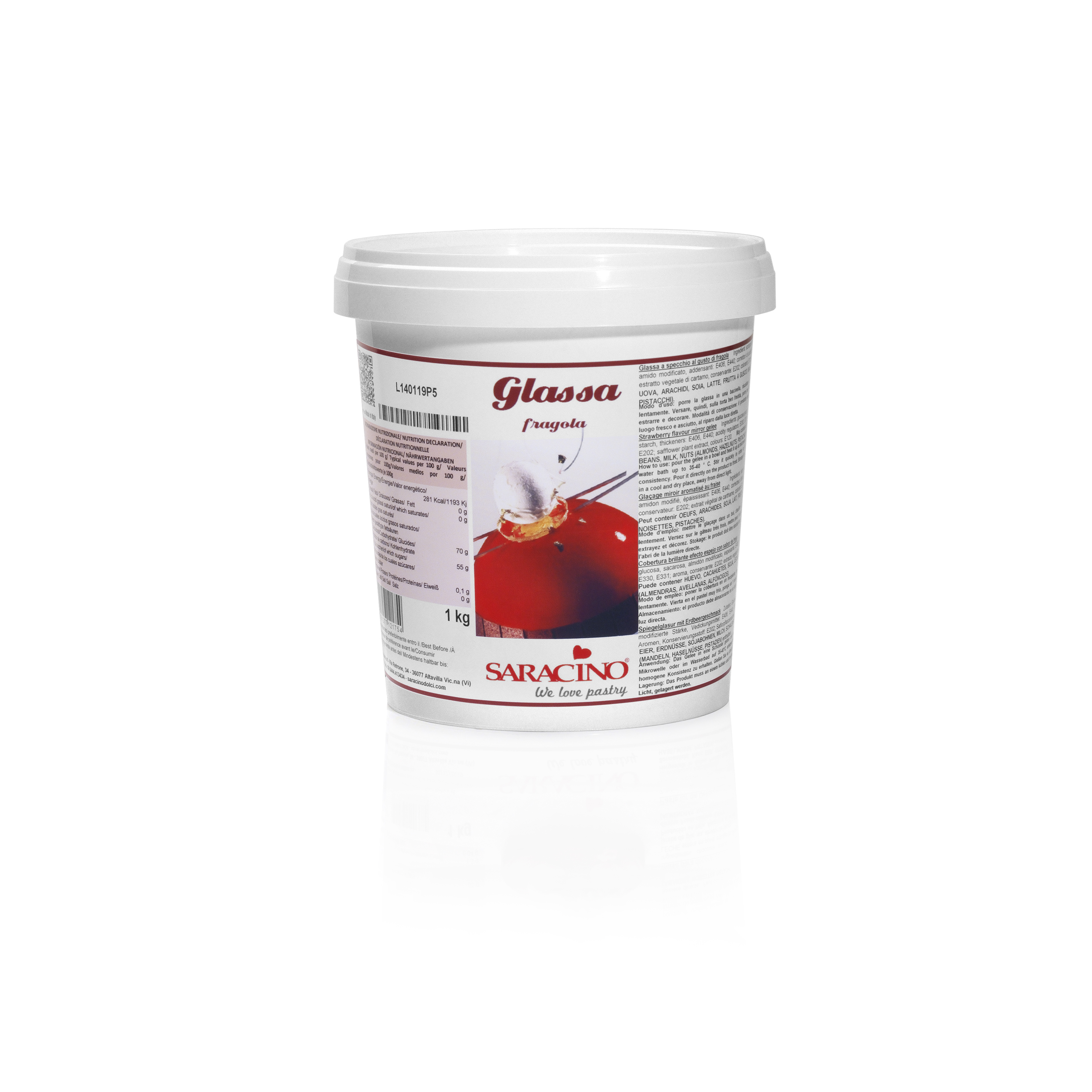 glukózový sirup, sacharóza, voda, modifikovaný škrob, zahušťovadlo: agar agar (E406) & pektin (E440), regulátor kyselosti: kyselina citronová (E330) & citrát sodný (E331), aromata, konzervanty: sorban draselný (E202), světlicový extrakt , barva: košenila .