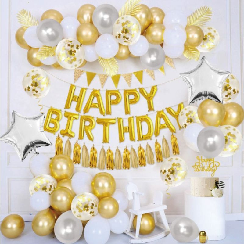 Ballonggirlande - gold-schwarz. Im Set 154 Stück.