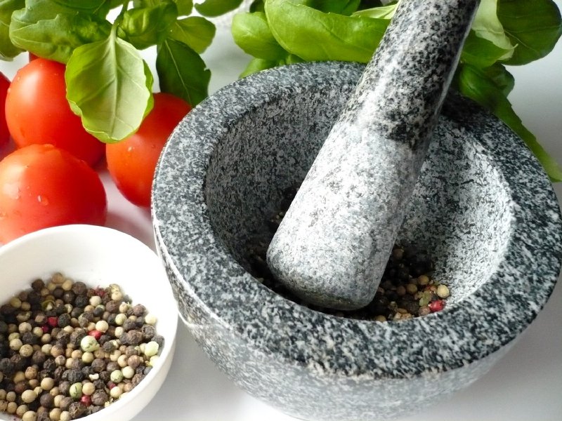 Der Mörser ist aus Granit oder Granitstein gefertigt. Für eine bessere Funktionalität ist der Mörser auf der Innenseite aufgeraut, so dass er leichter zu verarbeiten ist. Das Gesamtvolumen beträgt 250 ml. Aufgrund seines Materials ist er schwerer, aber das ist auch sein Vorteil. Er verrutscht nicht auf der Matte und ist leicht zu halten. Außerdem ist sie sehr pflegeleicht. Obwohl wir verschiedene elektrische Küchengeräte wie Mühlen, Zerkleinerer und Mixer besitzen, sollte der Mörser einen festen Platz in jeder Küche haben. Er eignet sich hervorragend, um das Aroma von zerstoßenen Gewürzen und geriebenen Kräutern freizusetzen und zu entfalten. Er zerkleinert die Gewürze in Stücke oder in ein feines Pulver, je nach Bedarf. Der Geschmack der Speisen ist dann viel besser, mit einem intensiveren Aroma. Das am häufigsten zerkleinerte Gewürz ist wahrscheinlich der ganze Pfeffer, aber wir können jedes Gewürz zerkleinern. Zum Beispiel Kreuzkümmel, Koriander und Fenchel für selbstgebackenes Brot. Sie brauchen die Oberfläche nur ein wenig umzurühren, und Sie werden das wunderbare und intensive Aroma riechen, das sich in der ganzen Küche entfalten wird. Der Mörser ist auch bei der Zubereitung von Lebkuchengewürzen, beim Zerkleinern von Senfkörnern usw. sehr nützlich. Sie können auch verschiedene Gewürzmischungen für unterschiedliche Zwecke je nach Bedarf mischen. Er kann auch zum Zerkleinern von Knoblauch und Kräutern bei der Herstellung verschiedener Marinaden, Pesto, Dressings und Kräuterbutter verwendet werden. Ich bin sehr zufrieden mit diesem Mörser und ich glaube, er wird niemanden enttäuschen. M.F.