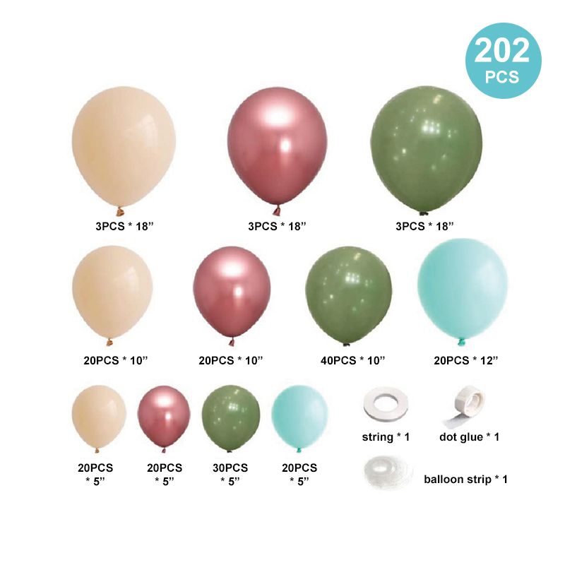 Prächtige Luftballon-Girlande, um eine festliche Atmosphäre zu schaffen. Diese atemberaubende Girlande sieht schön an der Wand über dem Tisch befestigt aus und ist die Hauptdekoration Ihrer Feier. Sie können sie über dem Eingang montieren und so ein prächtiges Tor schaffen. Diese elegante und stilvolle Dekoration zieht Aufmerksamkeit auf sich und freut alle Gäste. Ideal für Hochzeit, Geburtstage, Partys, Jubiläen oder andere luxuriöse Feiern. Dank der phänomenalen Ballonverzierung betonen Sie den Ort für Erinnerungsfotos. Installieren Sie unter der Girlande einen farblich abgestimmten Vorhang. Legen Sie dahinter einen Strauß Heliumballons, stellen Sie eine Bar oder eine Süßtafel bereit. Verwöhnen Sie Ihre Gäste mit unvergesslichem Spaß beim Festhalten glücklicher Partyfotos.