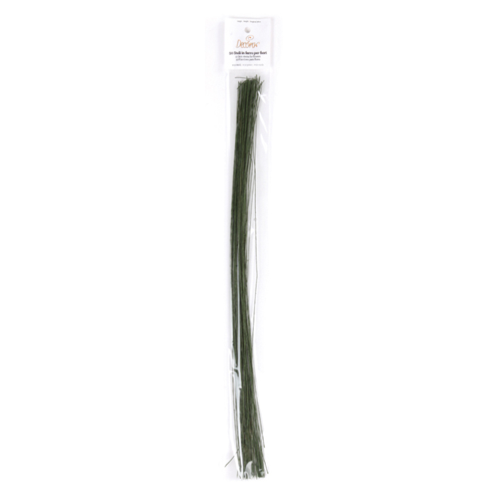 Die grünen Blumendrähte sind aus dickerem Draht gefertigt und mit Papier ummantelt. Die dicken Drähte eignen sich z. B. zum Formen von Blumen aus Gumpaste. Die Länge der Drähte beträgt 40 cm. 50 Stück.