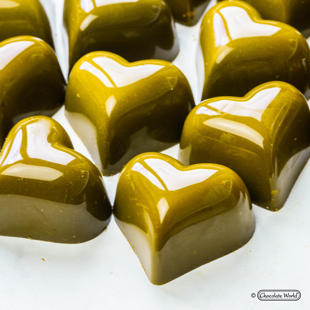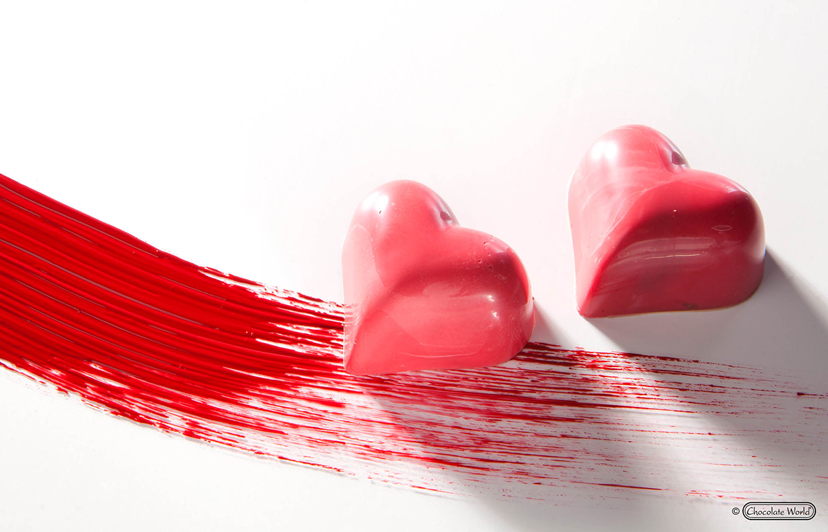 Herz-Pralinenform. Abmessungen 30 x 36 x 19 mm. Hersteller Chocolate world.