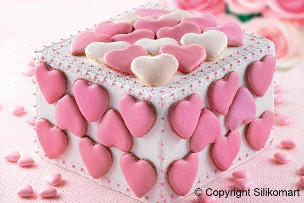 Mit der Makronenform können Sie 42 köstliche herzförmige Mandel-Meringues herstellen. Sie ist aus hochwertigem Silikon gefertigt, das pflegeleicht und dennoch sehr langlebig ist. Durch die antihaftbeschichtete Oberfläche lassen sich die fertigen Makronen leicht aus der Form lösen.