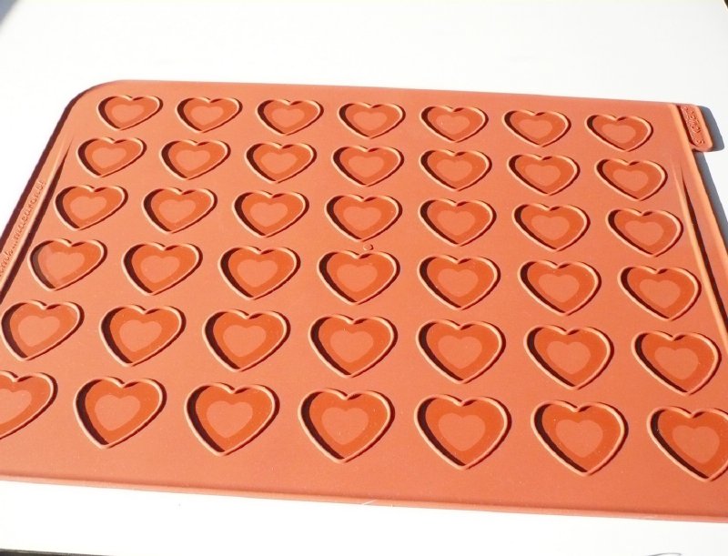 Die Form zum Backen von herzförmigen Makronen ist aus hochwertigem Silikon gefertigt, das Temperaturen von -60°C bis +230°C standhält. Sie können 42 Makronenschalen darin backen. Sie ist sehr leicht zu verarbeiten, die Makronen haben eine schöne Herzform, und die Makronen lassen sich nach dem Abkühlen leicht aus der Form lösen. Die Matte ist auch sehr pflegeleicht. Die Form kann nicht nur für Makronen verwendet werden, sondern auch für die Herstellung von Schokoladenherz-Dekorationen, die sich für verschiedene Desserts und Nachspeisen eignen.