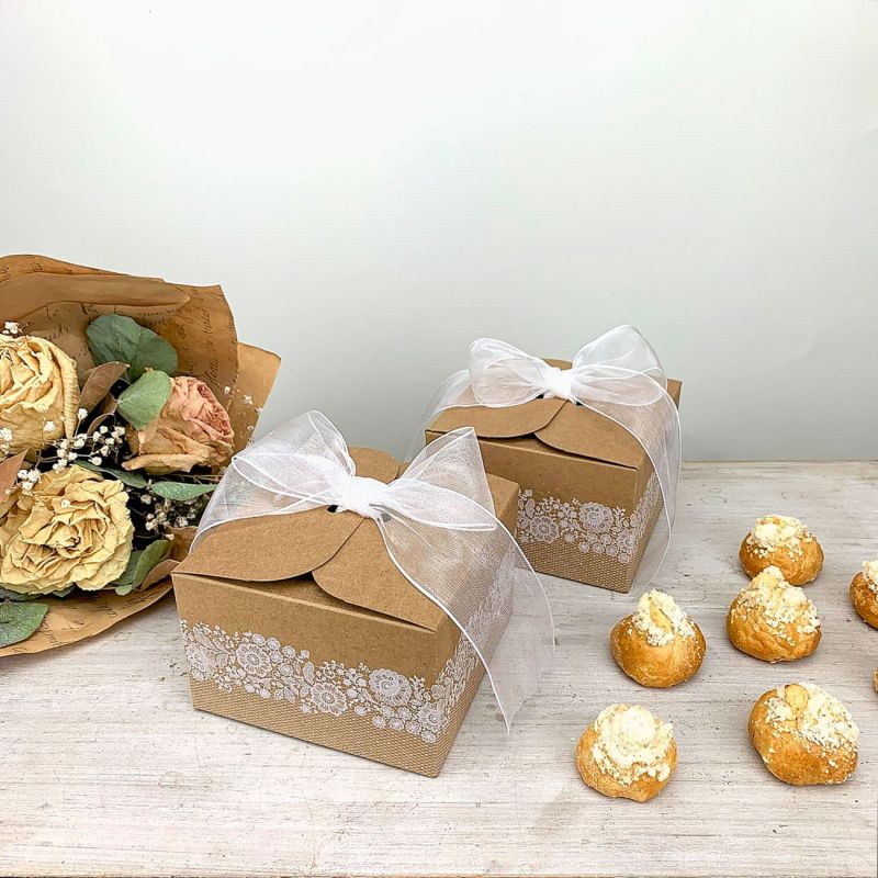 Die praktische Leckerbissenbox aus Papier mit dekorativem Aussehen eignet sich für Hochzeiten und and