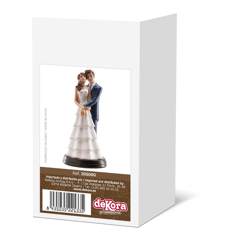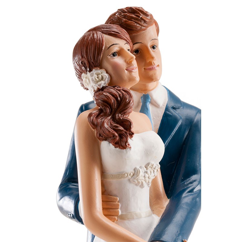 Elegantes Feiertagsornament ist perfekt für die Dekoration von Hochzeitstorten. Die Hochzeitsfigur ist eine einfache und elegante Lösung für die Dekoration von Torten. Die Hauptfiguren dieser dekorativen Figur aus Harz sind das Brautpaar in einer zärtlichen Umarmung. Sie zeichnet sich durch einen spontanen, lustigen und eleganten Stil aus. Sie erfüllt alle Anforderungen der europäischen Normen und ist für den Kontakt mit Lebensmitteln geeignet. Das Produkt ist für den professionellen Einsatz in Konditoreien geeignet. Diese nicht essbare Dekoration kann wiederholt verwendet werden, Sie können sie als Erinnerung an Ihren Hochzeitstag aufbewahren. Höhe 18 cm.