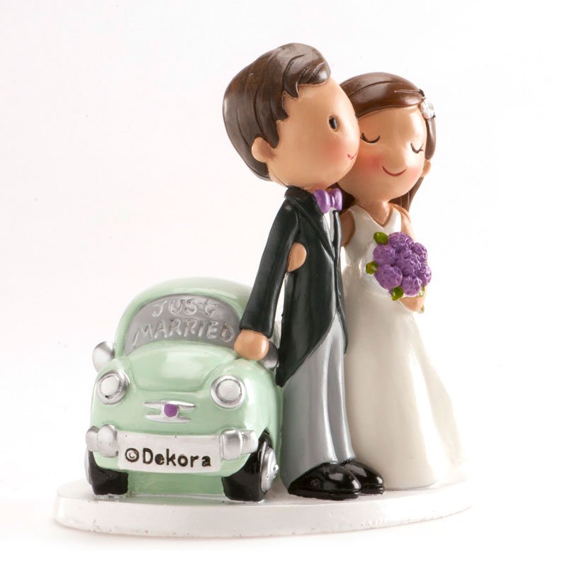 Hochzeitstortenfigur Frischvermählte mit Auto. Höhe 12cm