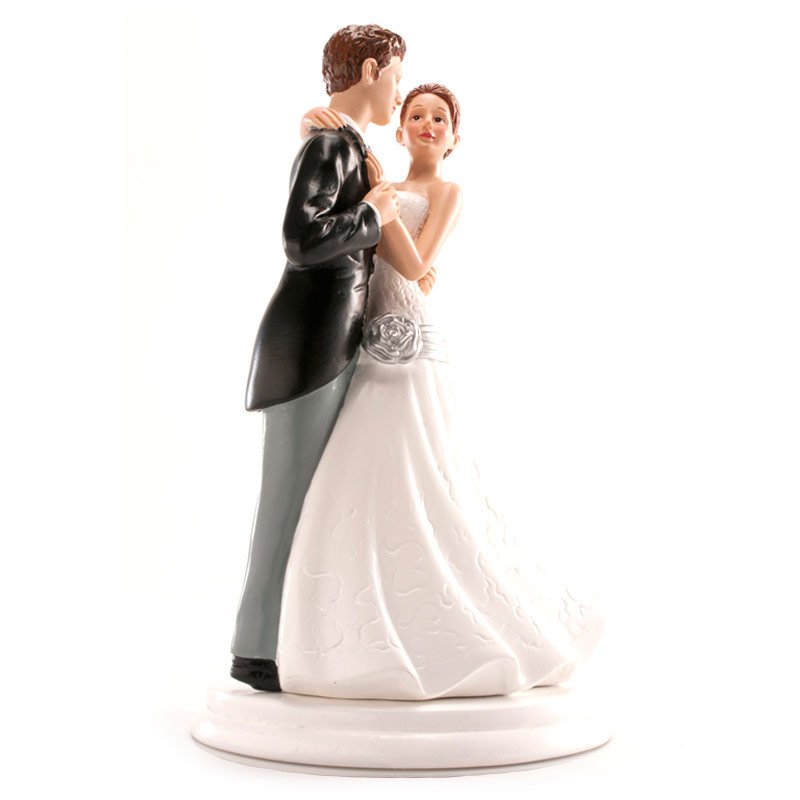 Elegantes Feiertagsornament ist perfekt für die Dekoration von Hochzeitstorten. Die Hochzeitsfigur ist eine einfache und elegante Lösung für die Dekoration von Torten. Die Hauptfiguren dieser dekorativen Figur aus Harz sind das Brautpaar bei seinem ersten Tanz. Sie zeichnet sich durch einen spontanen, lustigen und eleganten Stil aus. Sie erfüllt alle Anforderungen der europäischen Normen und ist für den Kontakt mit Lebensmitteln geeignet. Das Produkt ist für den professionellen Einsatz in Konditoreien geeignet. Diese nicht essbare Dekoration kann wiederholt verwendet werden, Sie können sie als Erinnerung an Ihren Hochzeitstag aufbewahren. Höhe 16 cm.