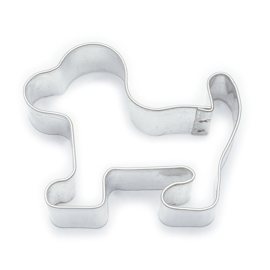Ausstechform in Form eines Hundes mit den Maßen 5,5 x 4,4 cm.
