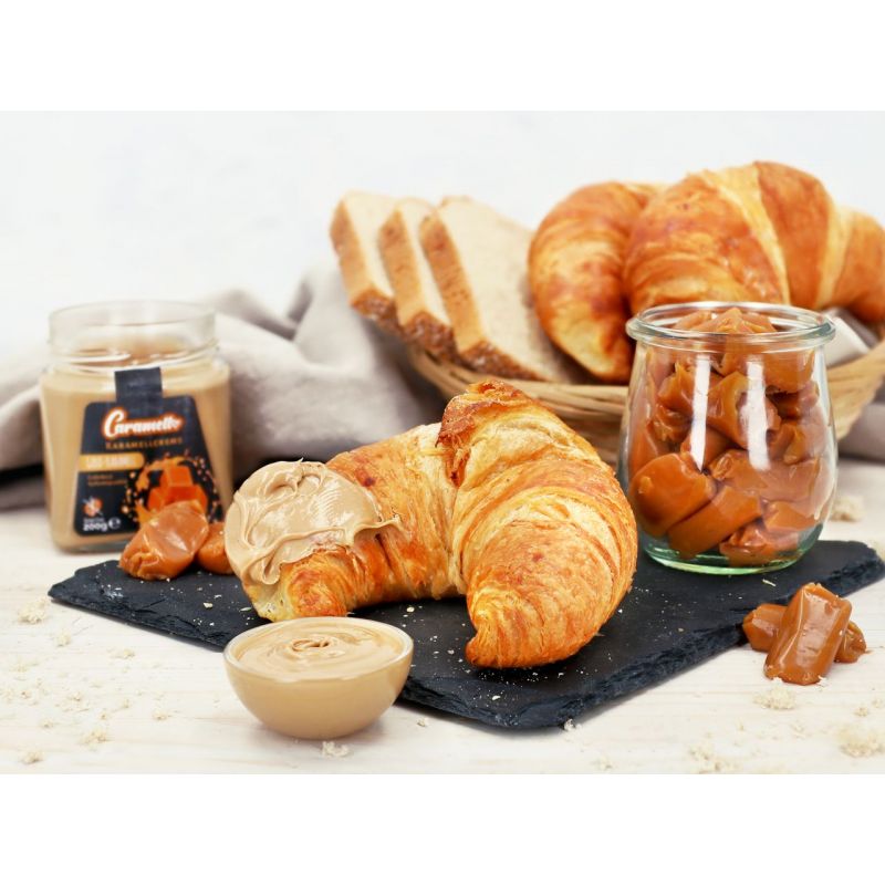 Hochwertige Karamellcreme aus weißem Karamell und goldener Schokolade. Ideal zum Verfeinern von Speisen wie Gebäck, Kuchen und Torten, als Aufstrich oder Füllung für Pralinen. Ein erhabener Geschmack mit Noten von Toffee, Butter, Sahne, ergänzt durch eine Prise Salz!