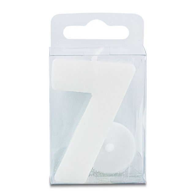 Kerze in Form der Zahl 7, Höhe 4 cm, weiß. Es ist besonders geeignet für Geburtstagskuchen und Dekoration ähnliche Desserts. Die Kerze entspricht in vollem Umfang mit allen Sicherheitsvorschriften.