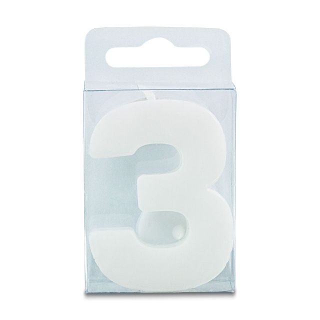 Kerze in Form der Ziffer 3, Höhe 4 Zentimeter, weiß