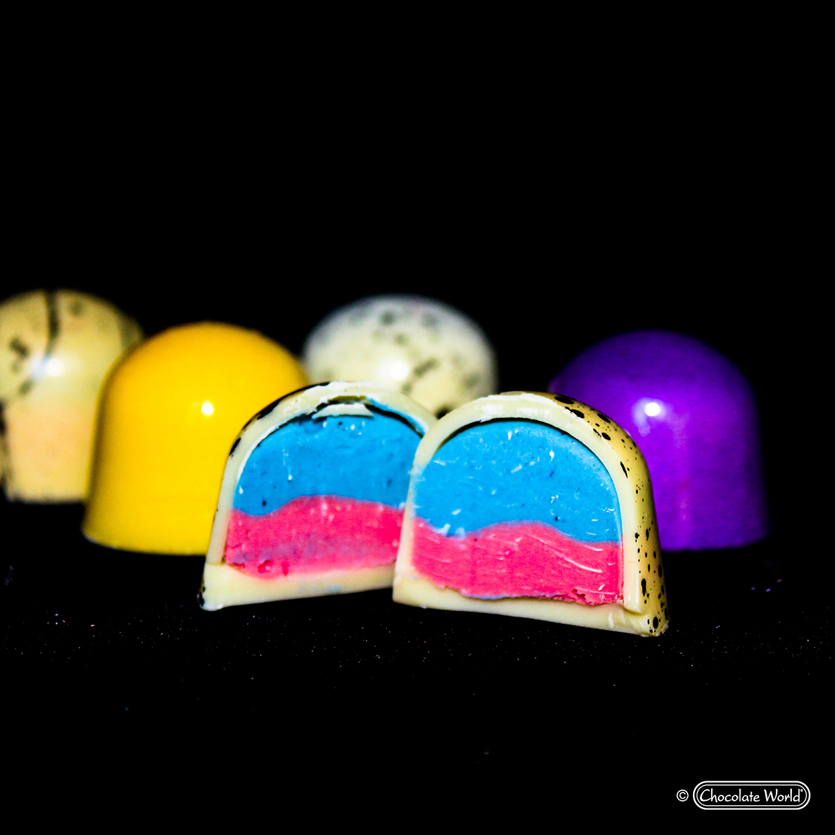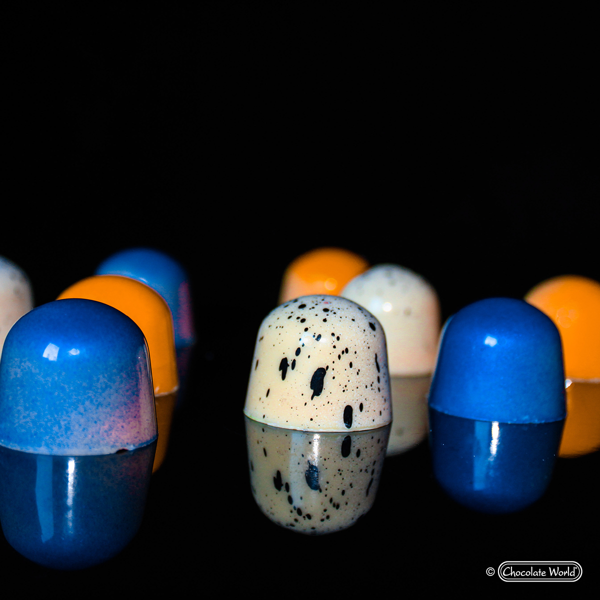 Polycarbonatform für die Herstellung perfekter Schokoladentrüffel. Diese hochwertige europäische Form ist einfach zu verwenden, Ihre Schokolade erhält eine glänzende Oberfläche und hebt sich leicht ab. Um bunte Schokoladenstücke zu erhalten, bestreichen Sie die Form mit einer dünnen Schicht gefärbter Kakaobutter, bevor Sie die Form mit Schokolade füllen. Das Design dieser Form ermöglicht es Ihnen, perfekte Formen mit sanft verlaufenden Linien zu formen.