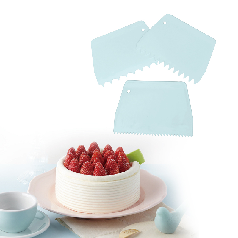 Backkarten mit Zähnen eignen sich zum Glätten von Cremes und Glasuren auf Torten. Im Set 3 Stück.