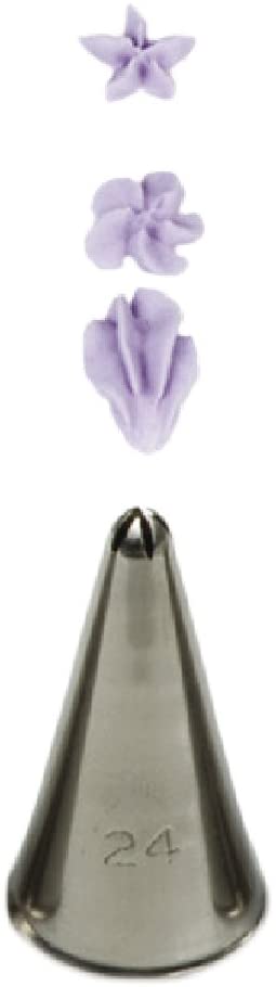 Die Metall-Dekorierspitze 24 garantiert Ihnen eine präzise und einzigartige Dekoration. Die Spitze kann wiederholt mit dem Dekorationsbeutel verwendet werden. Sie ist aus rostfreiem Stahl gefertigt, es bleiben keine Fettflecken auf der Oberfläche. Nicht spülmaschinenfest.