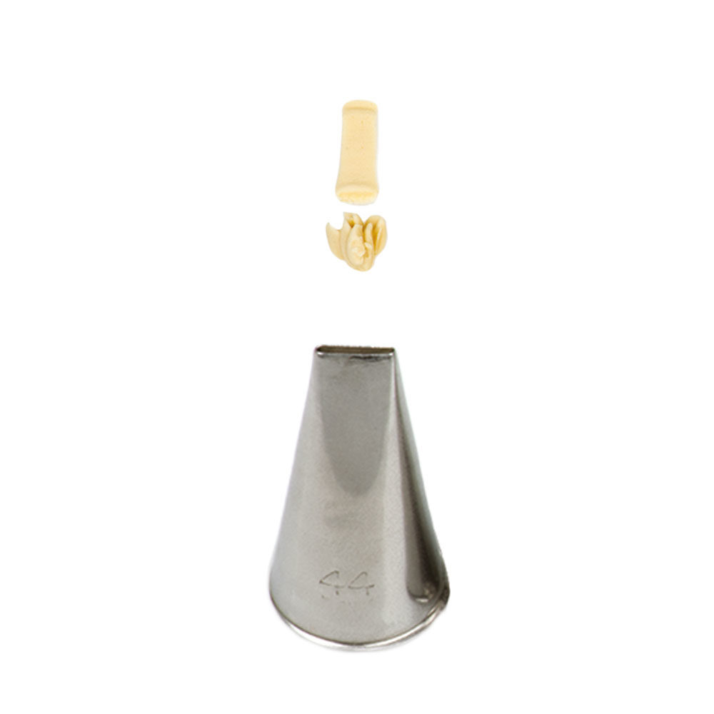 Die flache Metall-Dekorierspitze 44 garantiert Ihnen eine präzise und einzigartige Dekoration. Die Spitze kann wiederholt mit dem Dekorationsbeutel verwendet werden. Sie ist aus rostfreiem Stahl gefertigt, es bleiben keine Fettflecken auf der Oberfläche. Nicht spülmaschinenfest.
