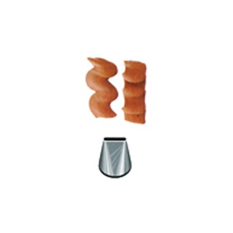 Flache Metall-Dekorierspitze #45 für die einfache Herstellung von kreativen Elementen aus Creme. Die Spitze kann wiederholt mit dem Dekorationsbeutel verwendet werden. Hergestellt aus rostfreiem Stahl, es bleiben keine Fettflecken auf der Oberfläche. Nicht spülmaschinenfest.