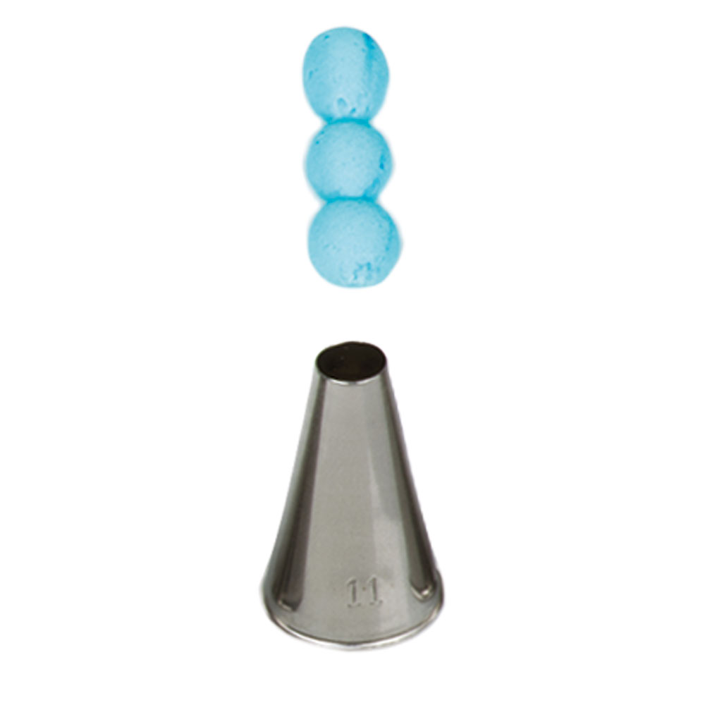 Die runde Metall-Dekorierspitze 11 ist aus hochwertigem Edelstahl gefertigt.