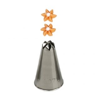 Metall-Spitz zur Keks-/Zuckerzierdekoration, geschnitten 107, sorgt für eine präzise und einzigartige Verzierung. Die Spitze kann wiederholt mit dem Spritzbeutel verwendet werden. Sie ist aus Edelstahl gefertigt, Fettflecken bleiben nicht auf der Oberfläche. Nicht geeignet für die Spülmaschine.