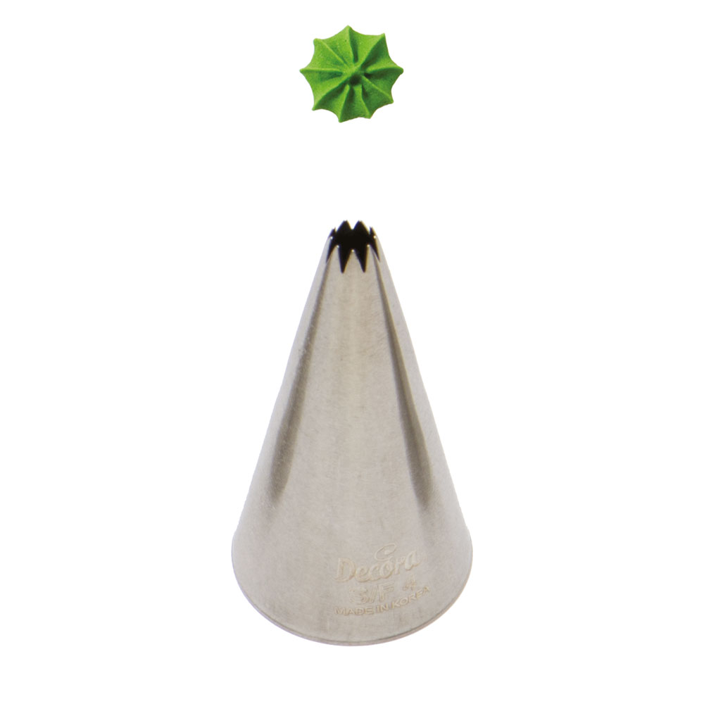 Metall-Tortenverzierungsaufsatz geschnitten S/F4 garantiert präzente und einzigartige Dekoration. Die Spitze kann wiederholt mit dem Spritzbeutel verwendet werden. Hergestellt aus Edelstahl, Rückstände von Fett bleiben auf der Oberfläche nicht haften. Nicht geeignet für die Spülmaschine.