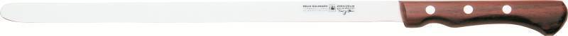 Hochwertiges und stilvolles Küchenmesser, das in erster Linie zum Schneiden von Lachs bestimmt ist, was sich auch in der Konstruktion und Form des Messers widerspiegelt. Die Klinge mit einer Länge von 30 cm besteht aus Edelstahl, dessen Vorzüge eine außergewöhnliche Schärfe umfassen. Das originelle Aussehen des Küchenmessers wird durch den geformten Griff aus Palisanderholz garantiert. Genau deshalb sollte das Messer nicht in die Geschirrspülmaschine gegeben werden.