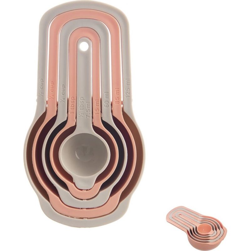 Dieses Set aus fünf Messbechern ist ein großer Helfer in der Küche. Es ermöglicht das genaue Abmessen von Zutaten, was beim Backen komplexerer Desserts oder herzhafter Leckereien oft notwendig ist. Die Becher sind aus hochwertigem PP-Kunststoff gefertigt und lassen sich zusammenstecken. Sie eignen sich zum Abmessen von Backpulver, Soda, Trockenhefe, Gewürzen und verschiedenen Aromastoffen. Die Messbecher sind mit den Maßangaben in ml, Esslöffeln (EL) und Tassen (Cup) versehen und spülmaschinenfest. Volumen der Messbecher: 7,5 ml/1/2 Esslöffel (Löffel) 15 ml/1 Esslöffel 60 ml/1/4 Tasse (Tasse) 85 ml/1/3 Tasse 125 ml/1/2 Tasse