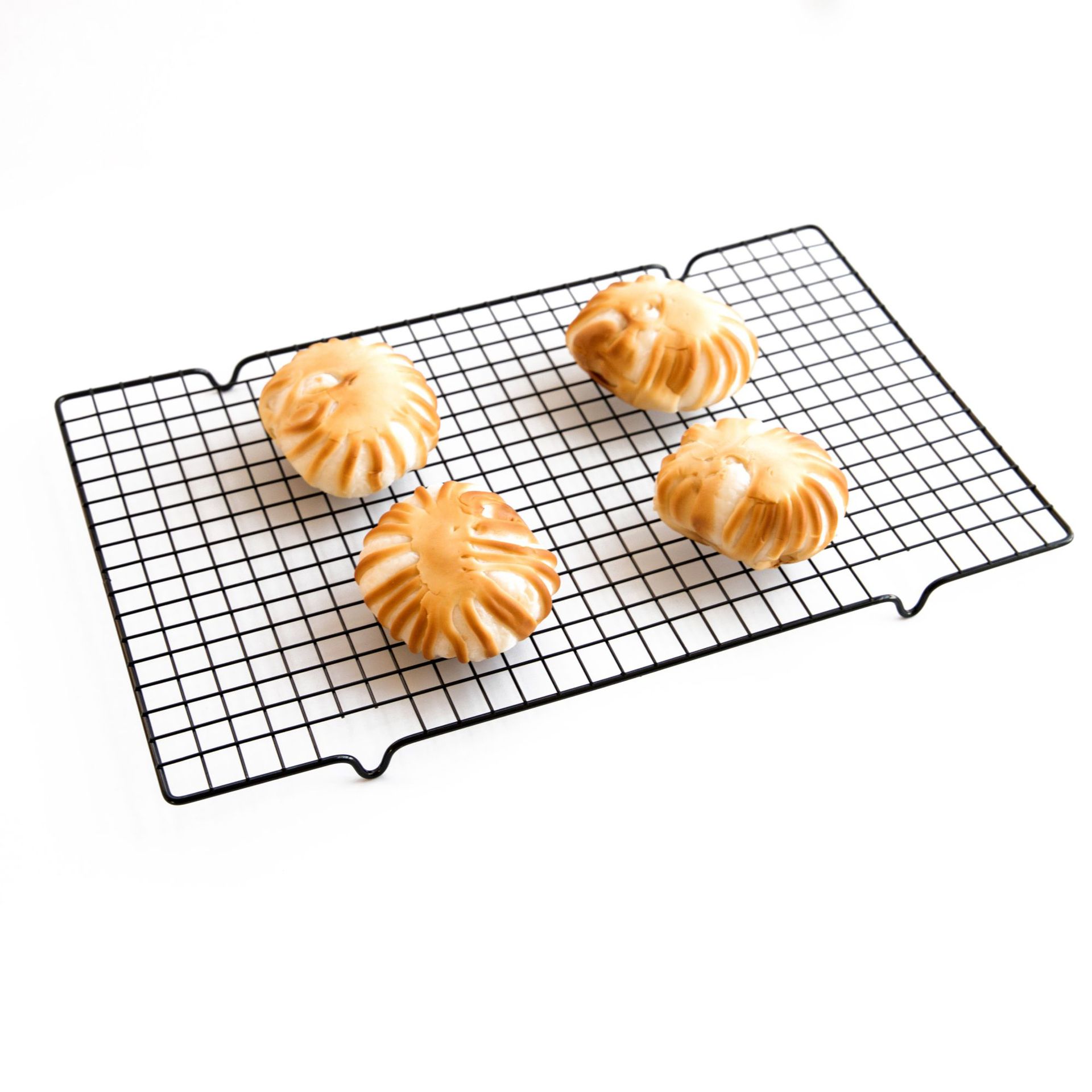 Dies ist ein Küchengerät, mit dem gekochte Speisen auf eine Oberfläche gelegt werden. So können die Speisen nach dem Garen von allen Seiten abkühlen, unabhängig davon, ob sie sich noch in der heißen Pfanne befinden oder ob sie aus dem Blech oder der Pfanne genommen und direkt auf die Grillplatte gelegt wurden. Das Design dieses Rosts hilft, Ihre köstlichen Backwaren zu heben, erhöht die Luftzirkulation, um die Aufnahme von Restdampf und das Durchweichen des Bodens zu verhindern, und spart gleichzeitig Zeit beim Abkühlen Ihrer Speisen, wodurch Sie die Effizienz Ihres Betriebs steigern können.