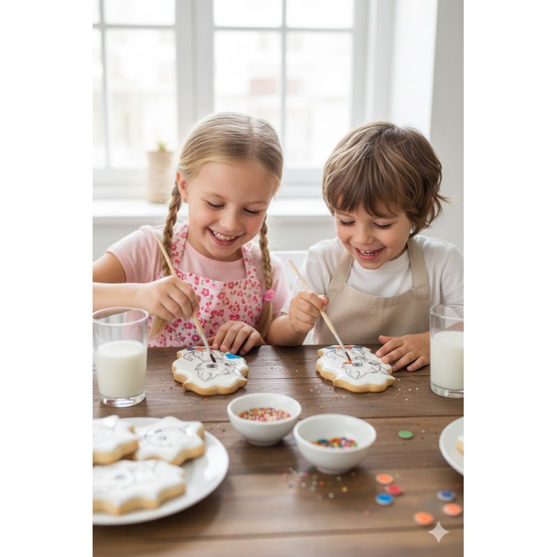 Kleines Vergnügen für alle kleinen Katzenliebhaber! Duftendes Kekschen in Katzenform ist mit weißem Zuckerguss überzogen und bereit zum Ausmalen mit essbaren Lebensmittelfarben. Im Packung befindet sich auch ein Pinsel, sodass nur ein Tropfen Wasser nötig ist und die Kinder mit dem Malen ihrer eigenen bunten Katze beginnen können. Warum die Lebkuchen-Malvorlage Katzchen wählen? - Beliebtes Motiv, das alle Kinder freut - Kreatives Gestalten mit süßer Belohnung - Ideales Mitbringsel für Feier, Geschenk und Unterhaltung zu Hause - Komplettes Set mit Pinsel für sofortiges Malen Die Lebkuchen-Malvorlage Katzchen 55 g ist hervorragend als kleine Aufmerksamkeit, originelles Geschenk oder unterhaltsame Aktivität, die Fantasie anregt und den naschhaften Gaumen erfreut.