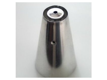 Mit dieser Spitze bereiten Sie große "Tunnel" aus Sahne zu, die mit Likör gefüllt und dann in Schokolade getaucht werden. Sie ist für die Zubereitung der traditionellen Likörspitze für Desserts gedacht. Stecken Sie die Spitze in den Spritzbeutel, wobei das Loch an der Seite der Spitze frei bleibt, und Sie können die Creme auf die Kekse spritzen. Abmessungen der Spitze: außen 32 mm, innen 24 mm, Länge der Spitze 6,5 cm.