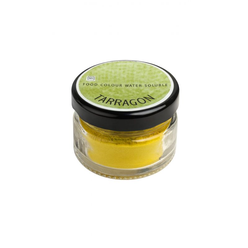 Wasserlösliches Farbstoff TARRAGON verleiht süßen Kreationen eine satte, natürliche grüne Tönung, die Frische und Energie der Kräuter evoziert. Dieser Farbton wirkt natürlich, elegant und verleiht Torten, Cremes und Getränken ein harmonisches Erscheinungsbild. Ideal für alle, die ihren Desserts ein authentisches und modernes Aussehen mit einem Hauch Natur geben möchten.