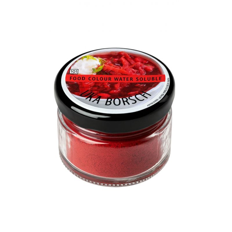 Wasserlösliches Farbstoff VIVA BORSCH zeichnet sich durch seinen tiefen, natürlichen roten Farbton aus, der an die Farbe von frischem Roter Bete und traditionellem Borschtsch erinnert. Dieser auffällige Ton verleiht Ihren Desserts lebendige und unwiderstehliche Optik, die natürlich wirkt und gleichzeitig elegant bleibt. Ideal für alle, die moderne Konditoreiprodukte mit warmem, authentischem Farbhauch herstellen möchten.