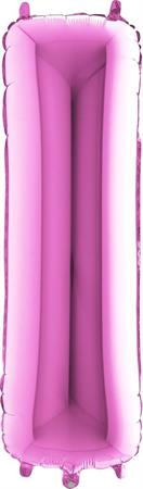 Rosenes Ballon Buchstabe I. Der Ballon besteht aus robustem Folienmaterial. Nach dem Aufblasen mit Luft hält er sich mehrere Wochen lang aufgeblasen, bei Heliumfüllung bleibt er fest aufgeblasen und fliegt bis zu 4 Tage. Verwenden Sie zum Aufblasen des Bal