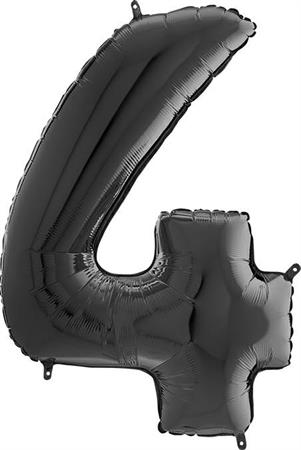 Schwarzer Ballon Nummer 4. Der Ballon besteht aus robustem Folienmaterial. Nach dem Aufblasen mit Luft hält er mehrere Wochen lang; wenn Sie den Ballon mit Helium füllen, bleibt er fest aufgeblasen und wird bis zu 4 Tage fliegen. Verwenden Sie zum Aufblasen des Ballons immer spezielle Pumpen, die dafür vorgesehen sind; wenn Sie einen Kompressor mit hohem Druck verwenden, kann der Ballon platzen. Nicht geeignet für Kinder unter 3 Jahren. Helium nicht einatmen.