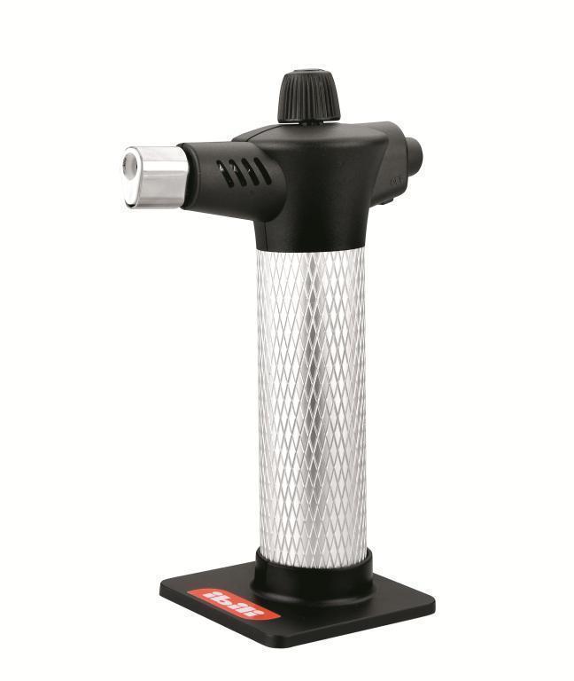 Gasfüllpistole. Ideal zum Flambieren, Anbraten und Karamellisieren von Crème brûlée. Die Brenndauer der Pistole beträgt 80 bis 150 Minuten. Die Höhe der Pistole beträgt 18 cm. Material: Kunststoff und Aluminium. Sie hat eine Kindersicherung. Die Pistole kann zusammengebaut werden.
