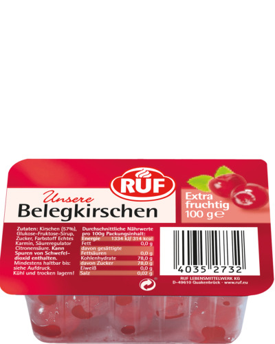 Kandierte Kirschen können als Dekoration auf der Oberfläche des Kuchens, aber auch in verschiedenen Teigen verwendet werden. 100 g Packung.